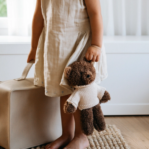 Milo bear is made with chocolate super soft plush fabric and wears a cream knitted jumper made from australian merino wool. I like blowing bubbles And watching them reach the sky Eating chocolate ice-cream And climbing trees really high I don't like carrots