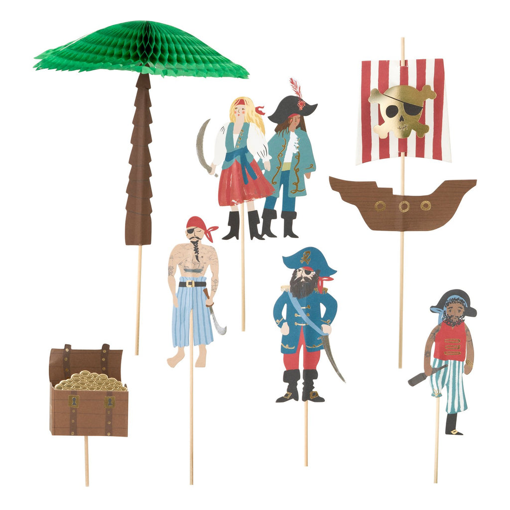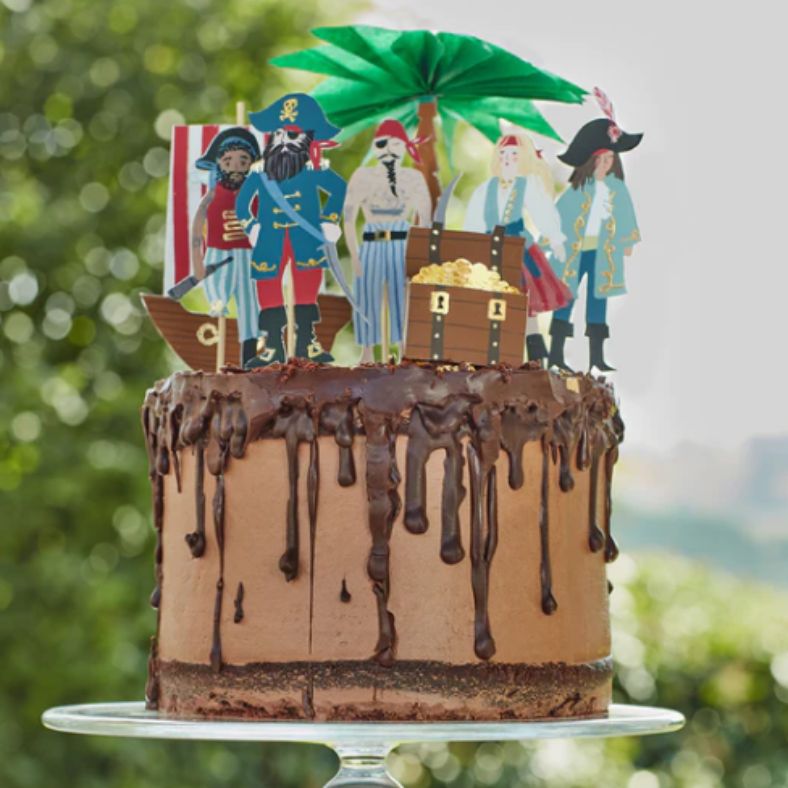 Transform a birthday cake into a pirate island with our fabulous pirates, treasure chest, ship sails and palm tree toppers. The details, colors and textures will really delight your party guests.