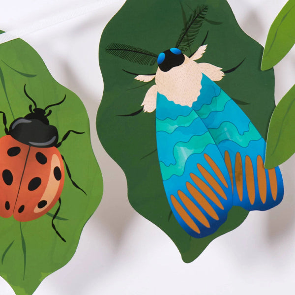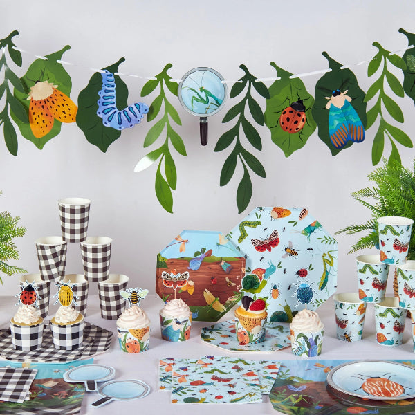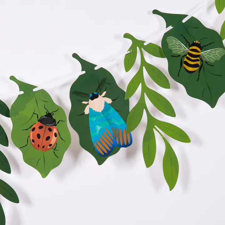 Bring nature-inspired charm to your celebration with this Bug Party Garland. Featuring 13 pre-strung elements including layered leaf shapes, playful insects, and a magnifying glass detail, this garland adds height, movement, and storytelling to dessert tables, entryways, and photo backdrops. Perfect for nature themes, garden parties, and educational celebrations.