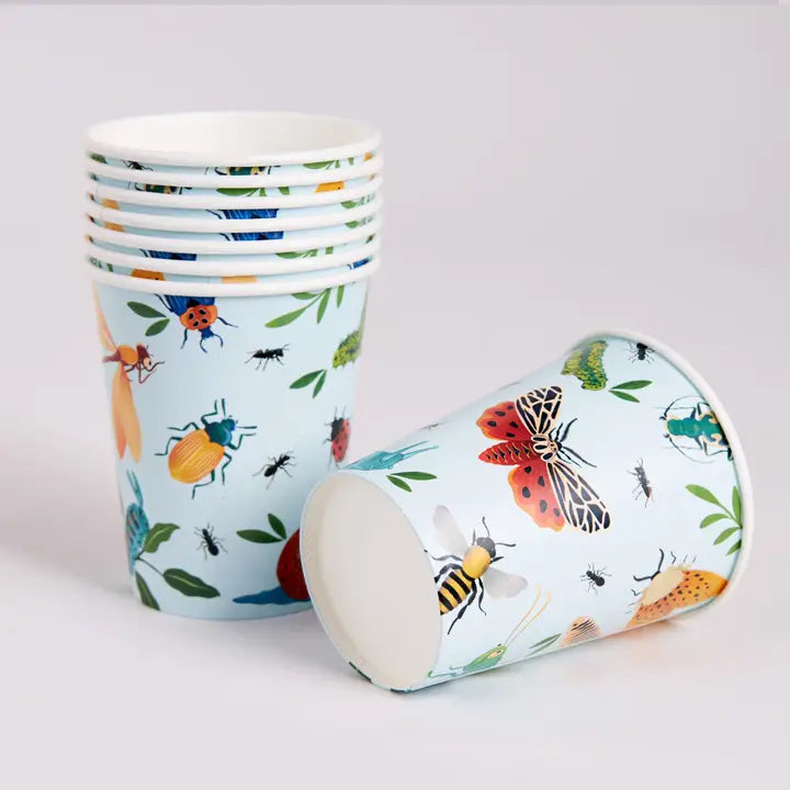 Bug Party Paper Cups bring cheerful charm to themed celebrations with their soft light-blue palette and whimsical bug illustrations. Perfect for coordinating with the full Bug Collection, they create a cohesive, eye-catching display for retail or event settings.