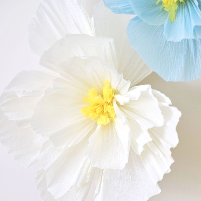 1 x 30cm white flower, 1 x 20cm pink flower and 1 x blue flower measuring 20cm in diameter
