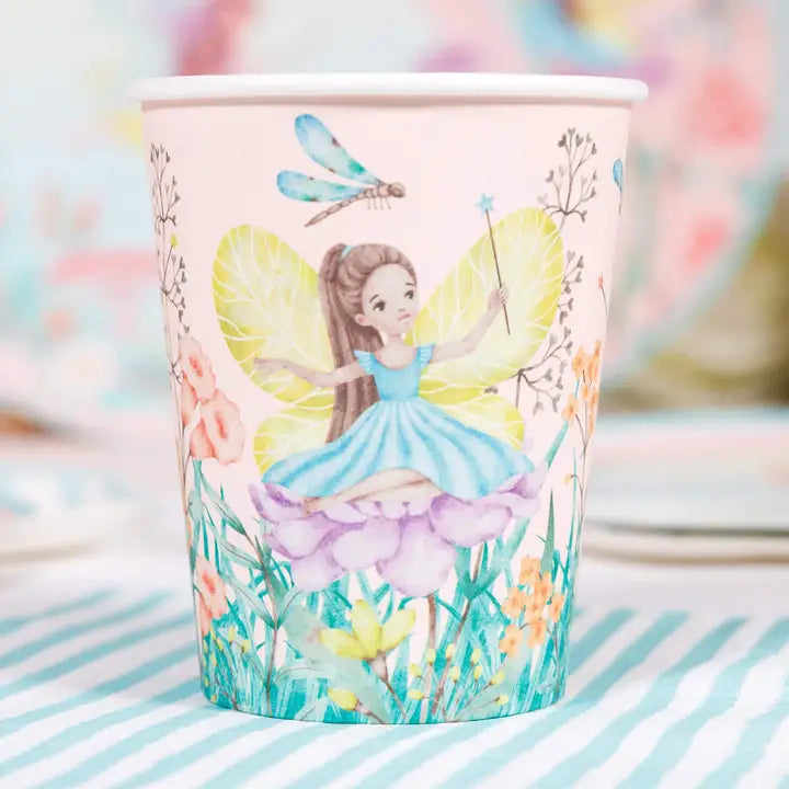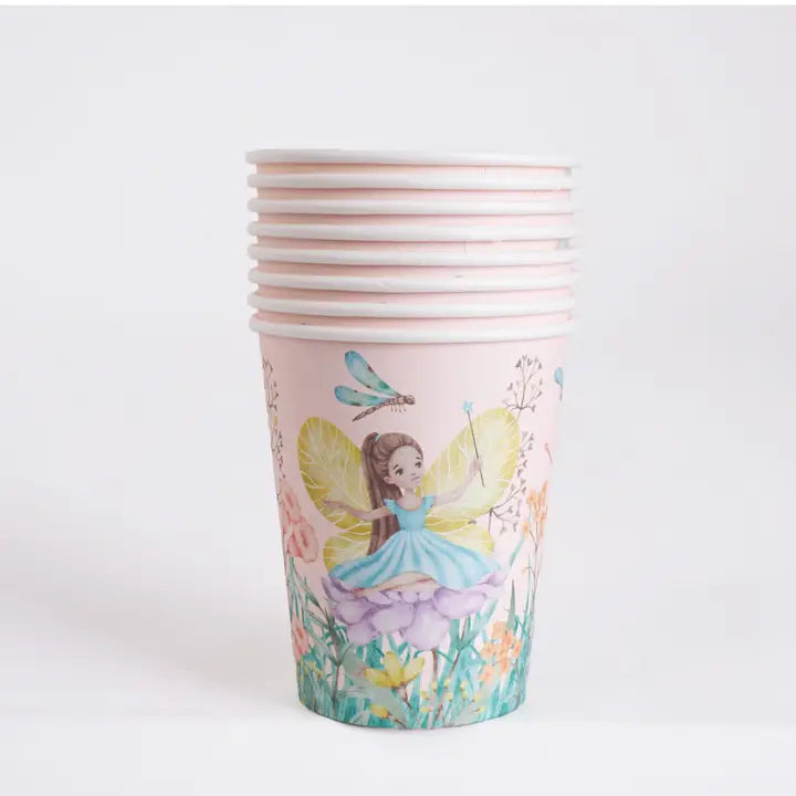 These fairy garden paper  party cups with enchanted floral artwork. Perfect for creating a magical table setting, they layer beautifully with matching plates and napkins to bring your fairy-themed celebration to life. Ideal for birthday parties, tea parties, and spring gatherings where whimsy meets elegance.